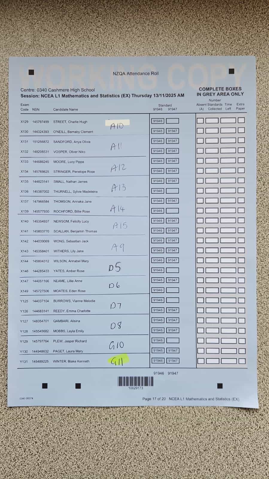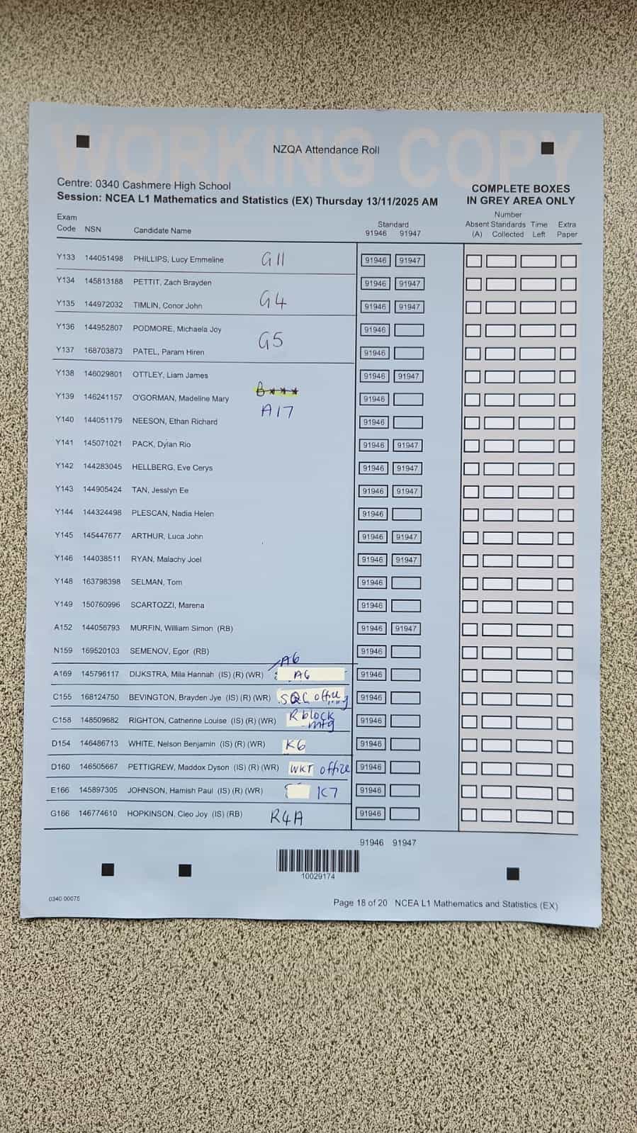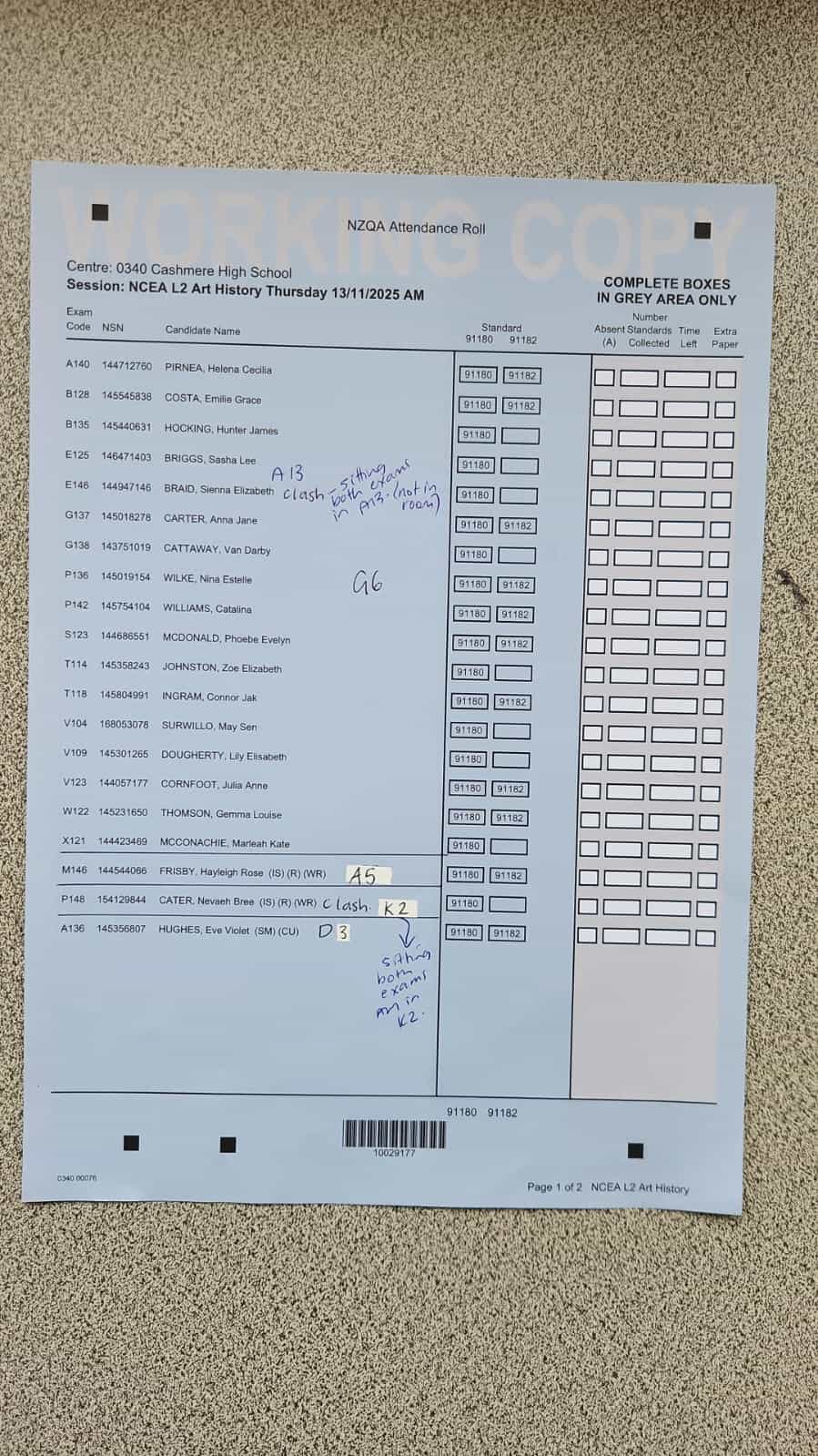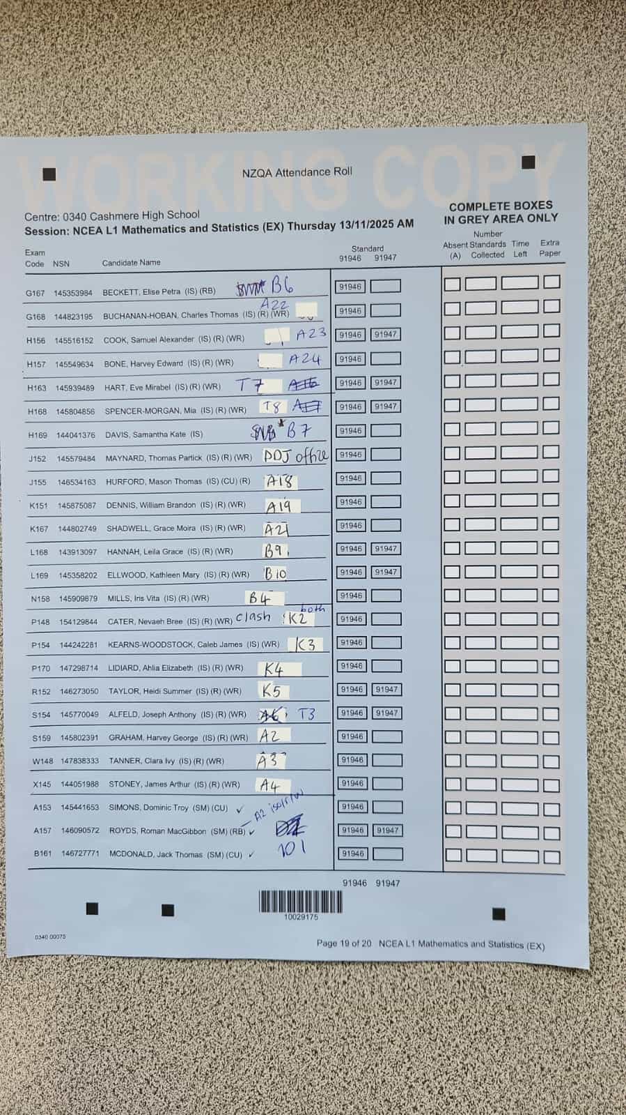 Exam Room Timetable 2025
