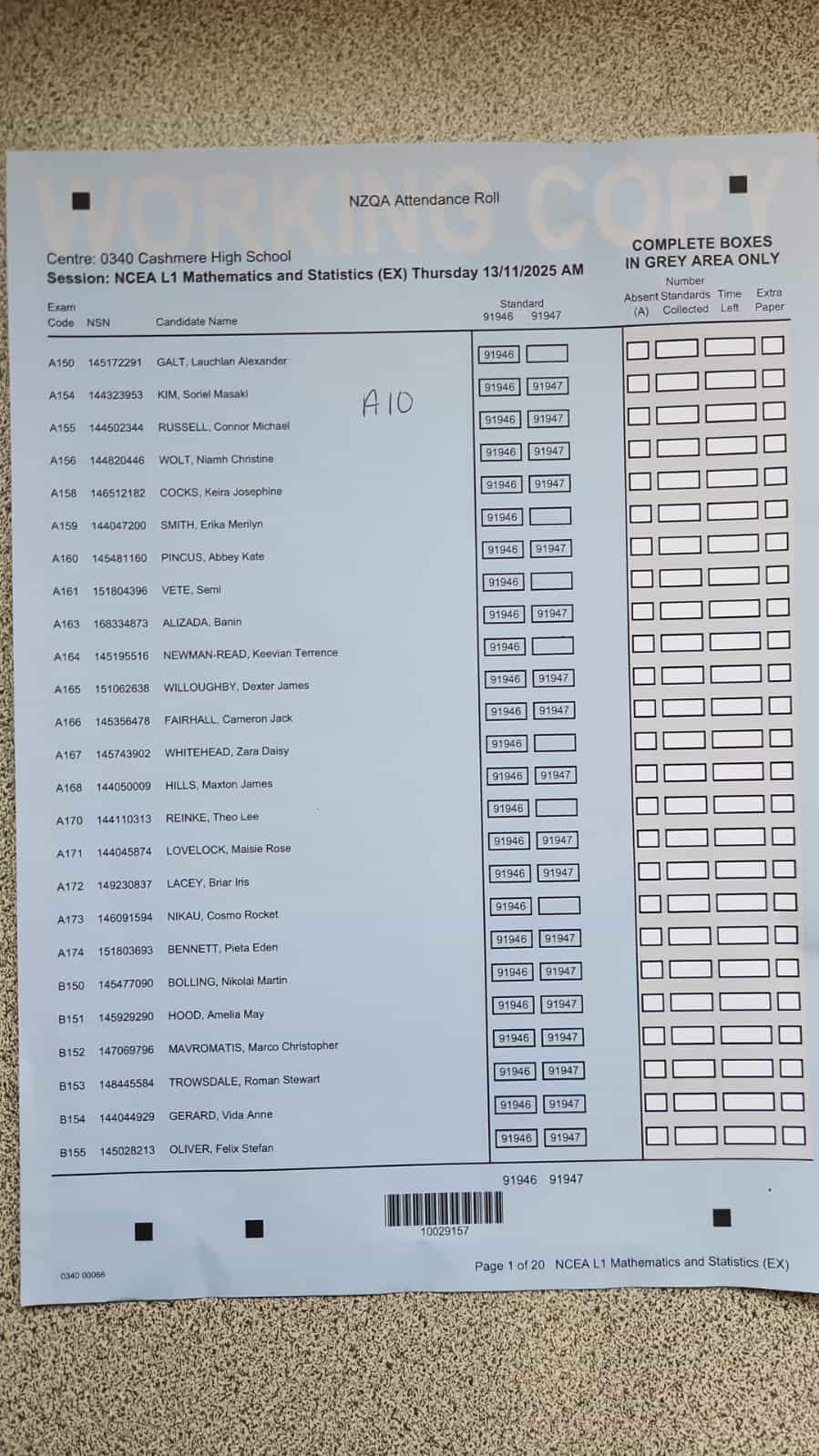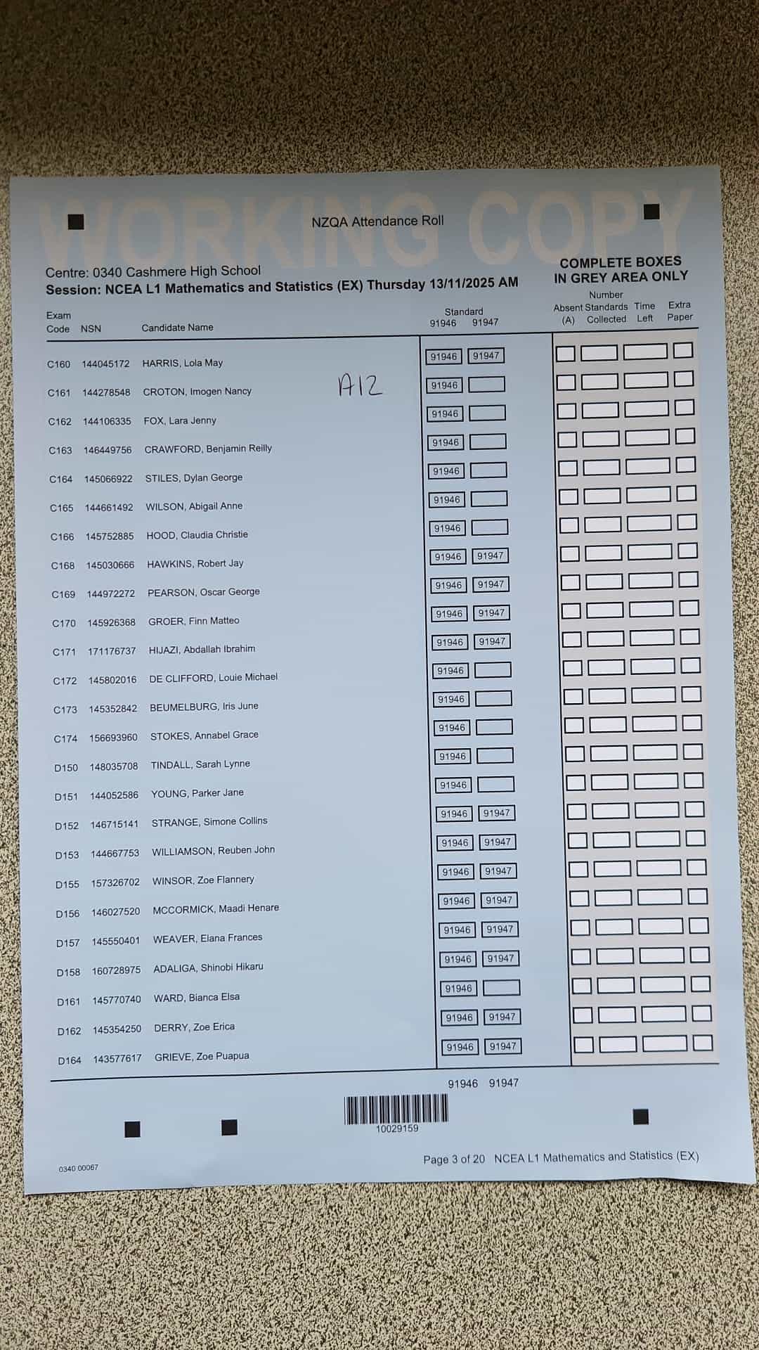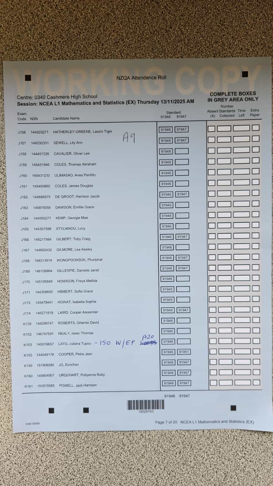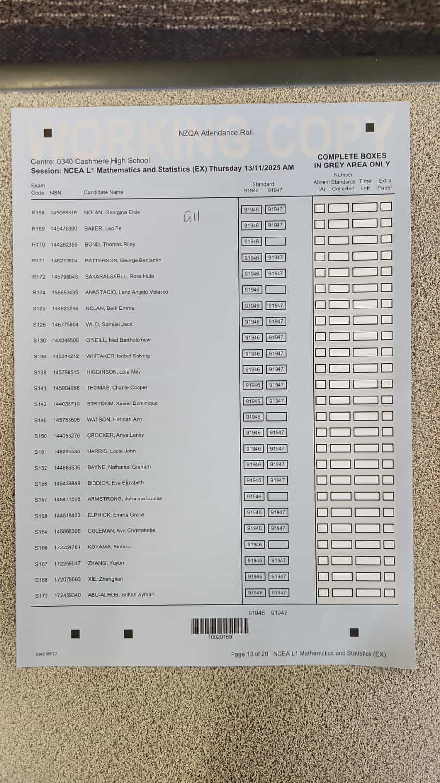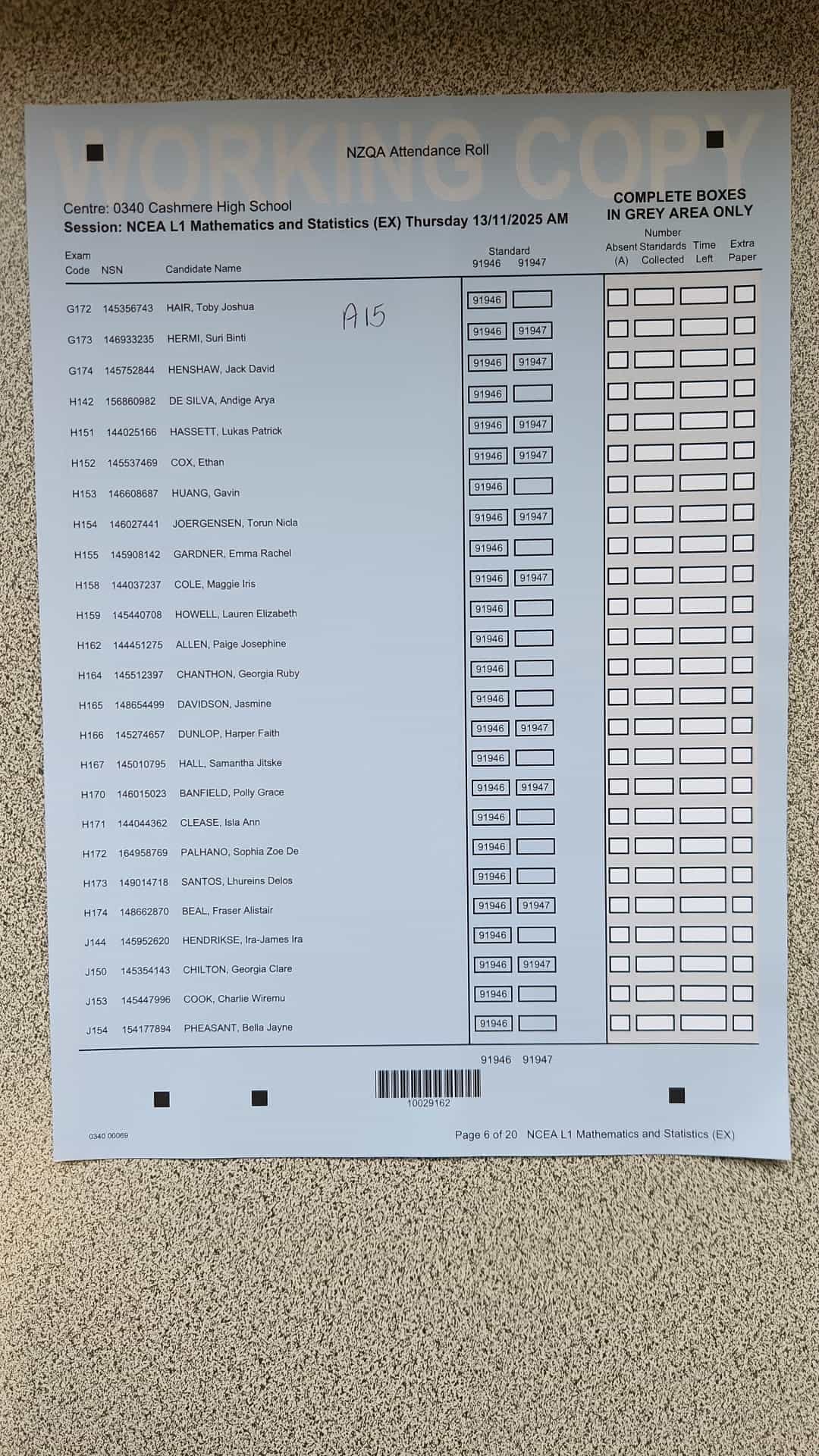 Exam Room Timetable 2025