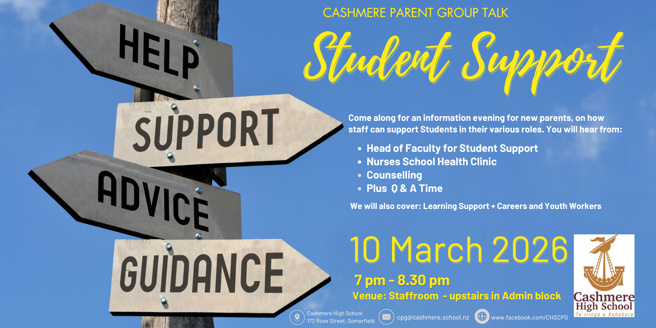 If you are interested in attending, have an idea for a parent talk topic or anything else, please email cpg@cashmere.school.nz